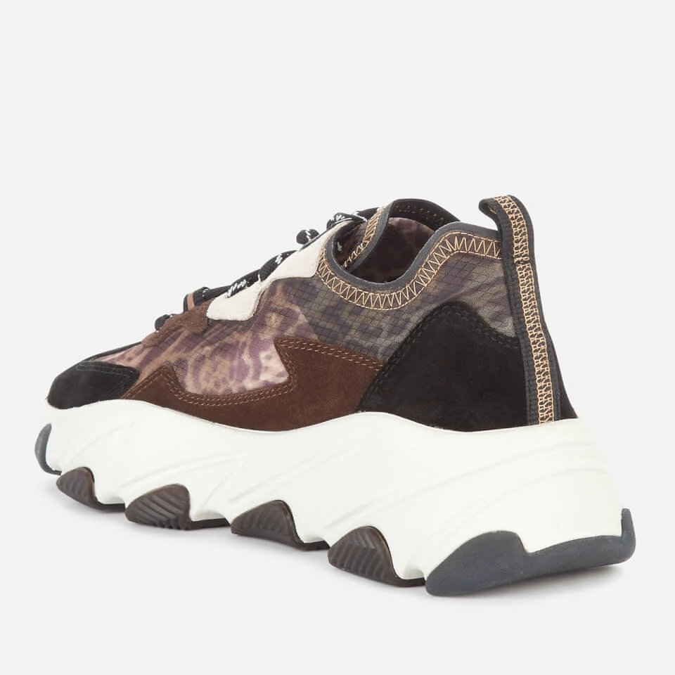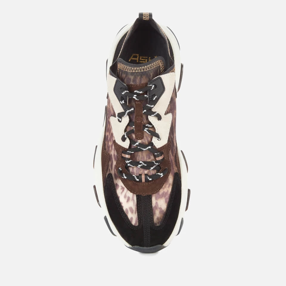 Make an edgy statement in animal print, a fashion go-to that transcends every season, and a distinguishing feature of Ash’s seasonal collection. Fashioned with suede overlays and clashing cheetah-print fabrics, the chunky trainers comprise sock-like uppers made of ripstop nylon, a lace-up fastening, and thick platformed sole with deep-set serrated grooves that allow for greater flexibility and movement.