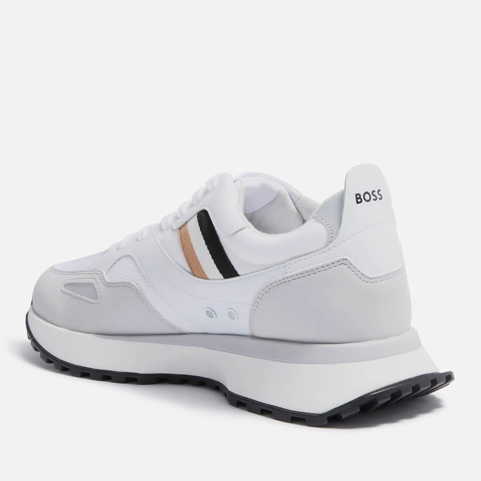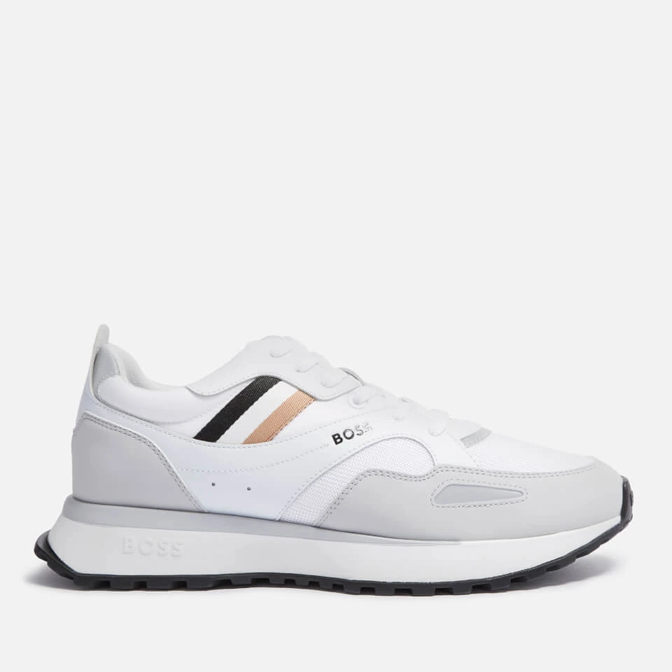 - Pull tabs, reflective details, designer logos and striped patch, rubber soles
