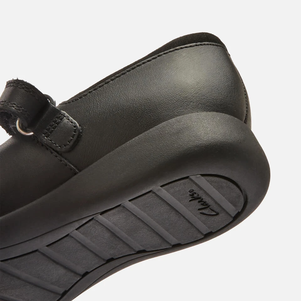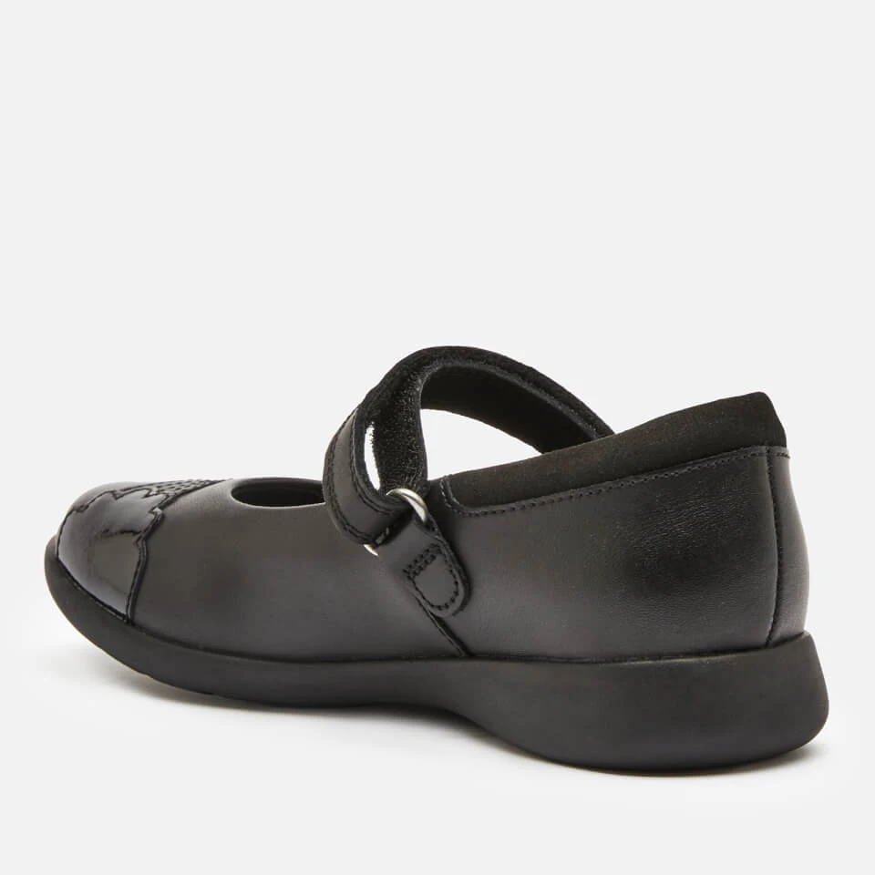 Decorated with a fun rainbow design with subtle multicoloured jewels, the Clarks Etch Beam school shoes have sturdy black leather uppers and a durable rubber sole for grip on the playground. They have a riptape fastening for easy on and off, and to encourage independent dressing for growing kids. The sparkling glitter linings have Agion technology that fights odour-causing bacteria to keep feet feeling fresh.