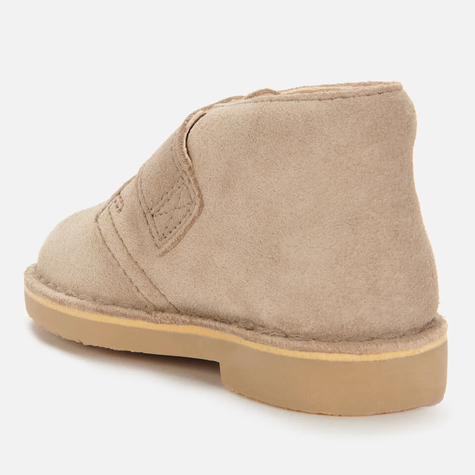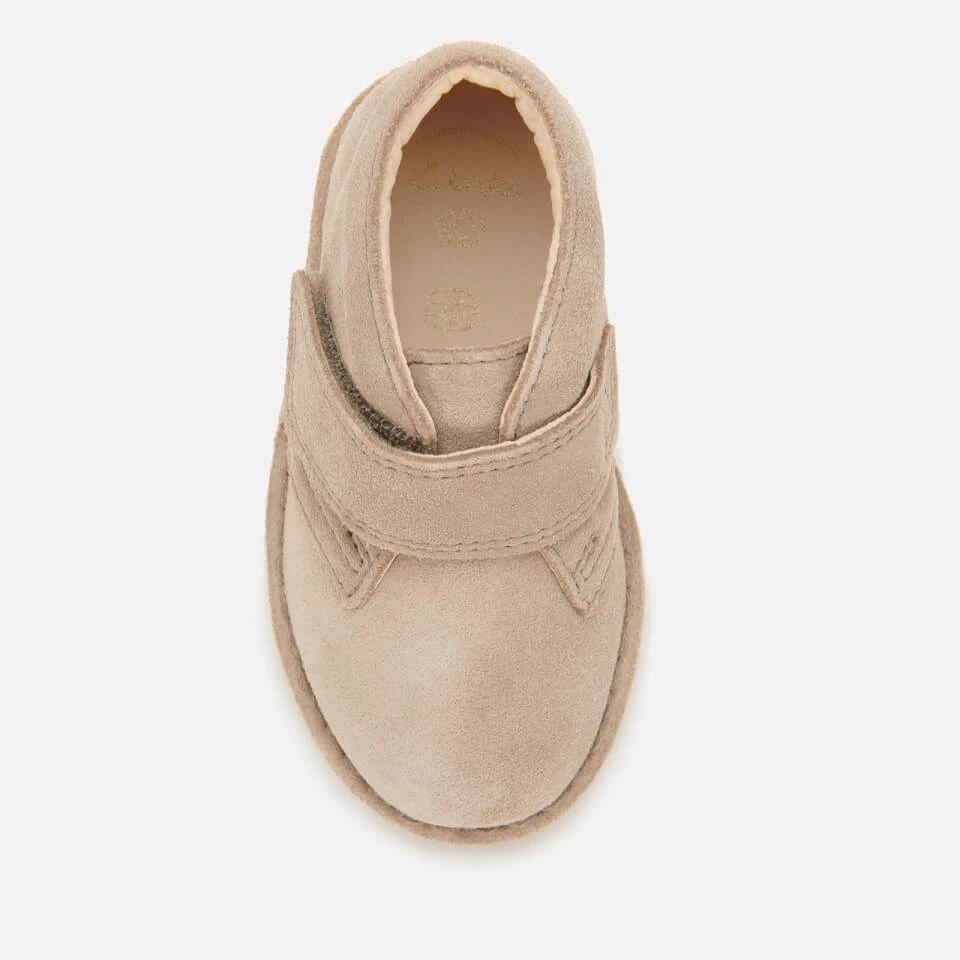 A mini version of Clarks iconic Desert boots, the toddler’s design is made from smooth beige suede and lined with soft leather that supports natural foot development. They’re designed with a padded collar for increased comfort and a single riptape strap to encourage independent dressing. Set on a recycled rubber sole which is designed to resemble the classic crepe look.