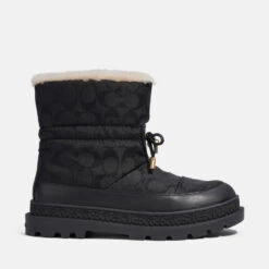 Coach’s iconic ‘C’ monogram is worked into these Kailee snow boots. Crafted into a mid-ankle silhouette, the design features plush sheepskin lining with rubber lug soles, so you can take cosy and confident strides in the harshest of elements.