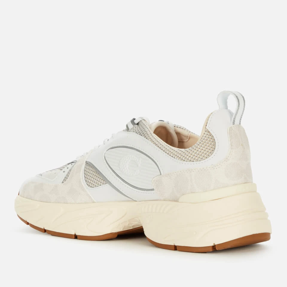 Lean into athleisure-level looks with these white running-style trainers from Coach. The panelled design offers an amalgamation of leather, suede and mesh, all of which adds to their streetwear appeal, while the brand’s Signature print can be spied at intervals. A rubber logo to the side adds another nod to the label.