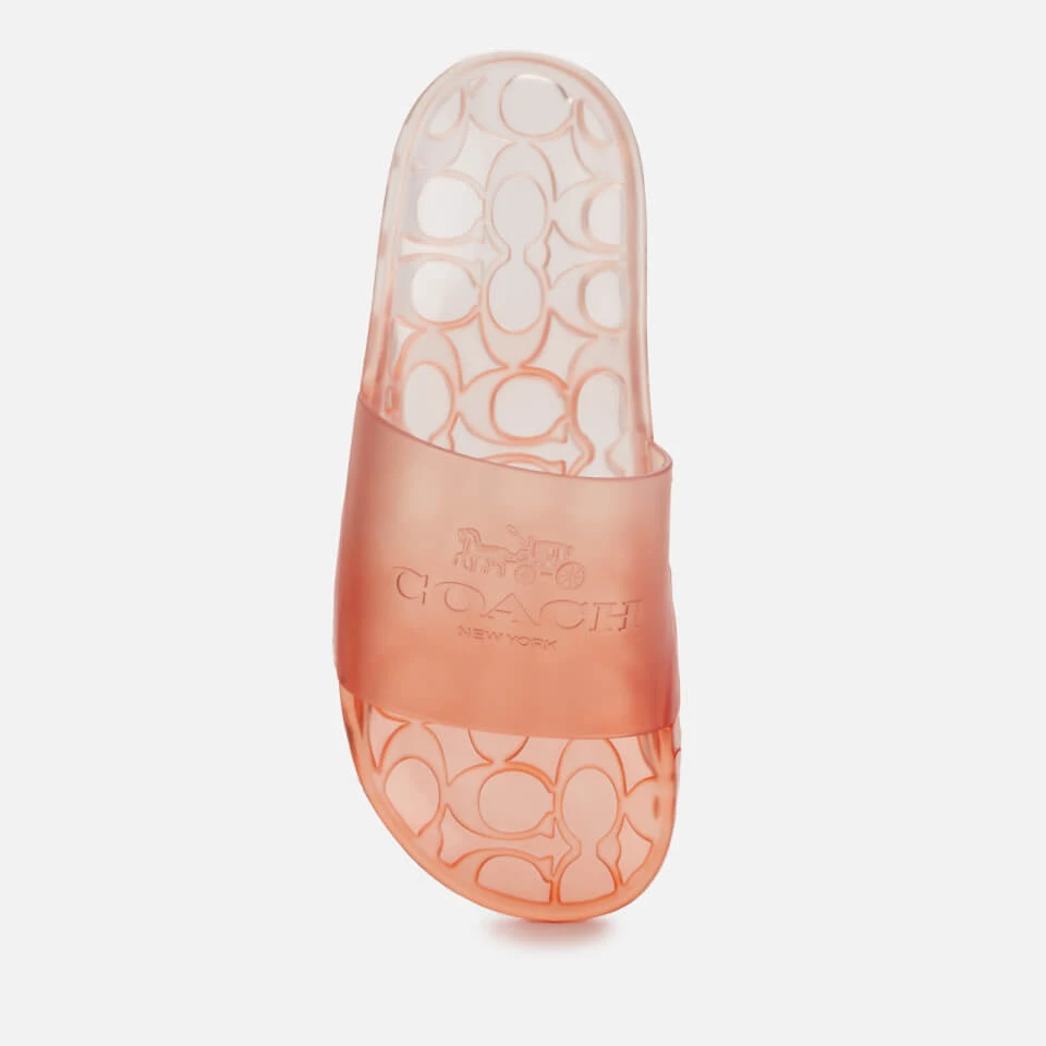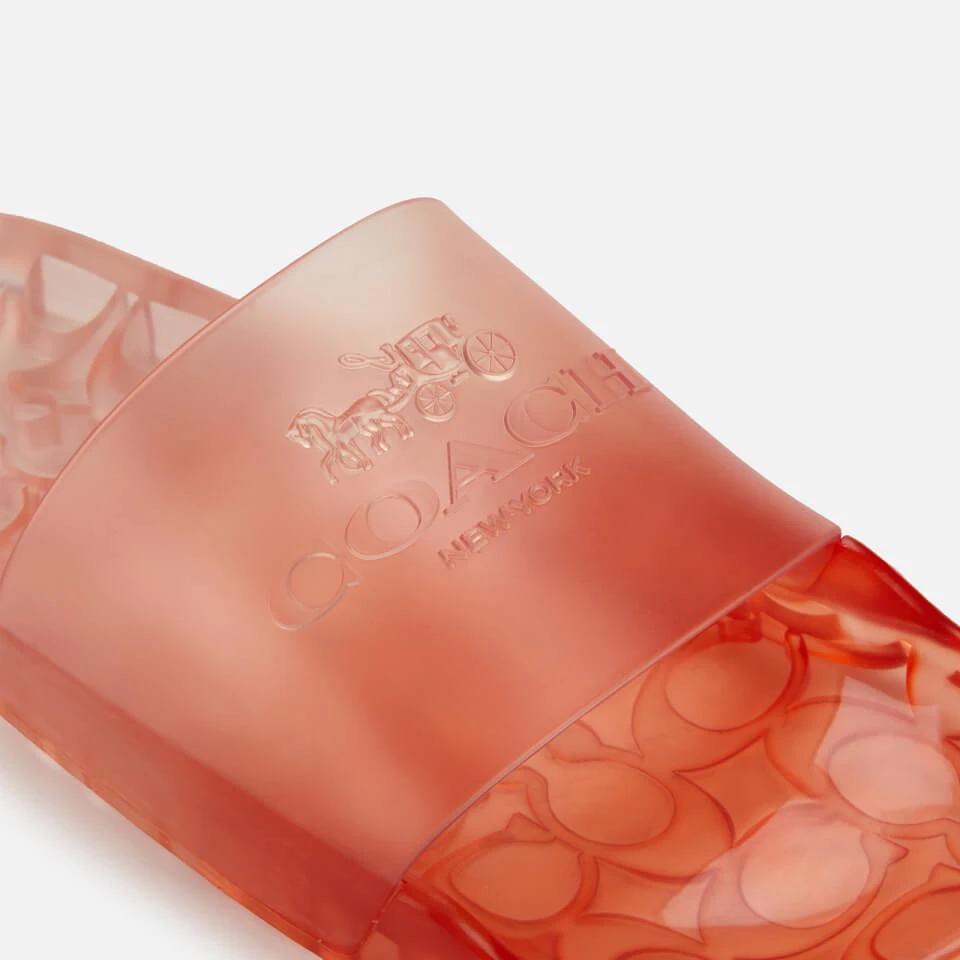 Made from tangerineĀ translucent rubber, Coachās Ulyssa slides glow withĀ a warm, summery energy. Ā Designed for waterside strolls, the waterproof slider has a signature monogram sole alongside the labelās heritage Horse and Carriage motif at the vamp.