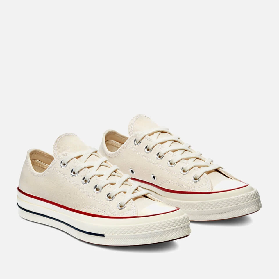 Converse Chuck Taylor All Star 70 Ox trainers in parchment. Classic Converse low-top shape in a cream coloured canvas. With a durable rubber sole and signature black and red stripes, this trainers are iconic.