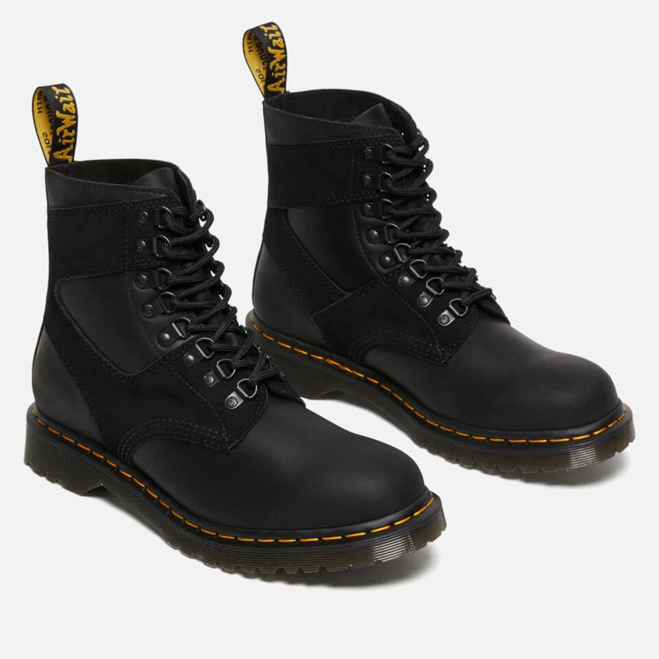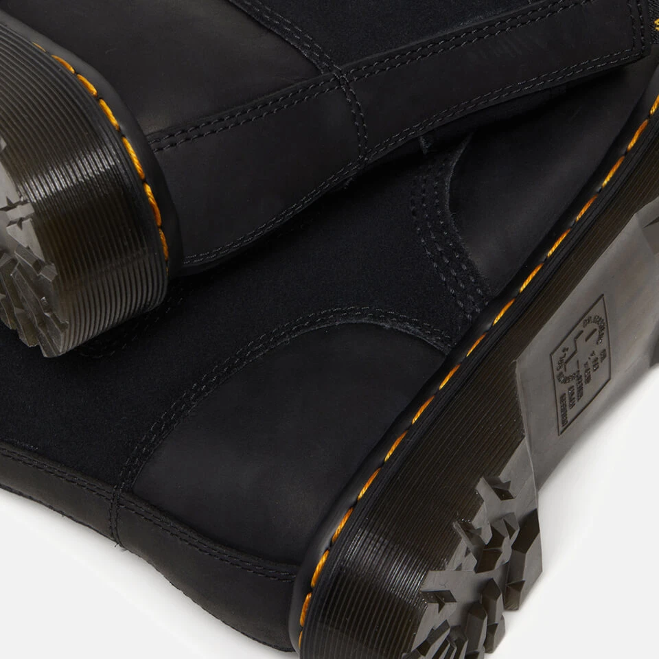 - Logo pull tabs, eyelets, round laces, suede panels, signature yellow stitching, signature Air Wair soles