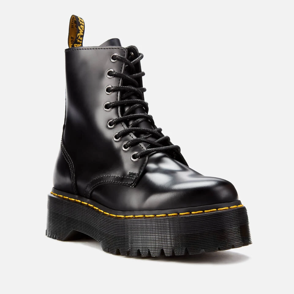 Based on the classic 1460 design, these sturdy Dr Martens boots grip the upper ankle, with the 8-eye fastening supporting the leg and foot. The strong, high-quality polished smooth leather is accentuated by the yellow stitching and heel loop. Dr Martens started life as humble work boots before becoming style icons. The products are both fashionable and practical, and they now cater to all: men, women and children, providing excellent foot care and a distinctive aesthetic to users.
