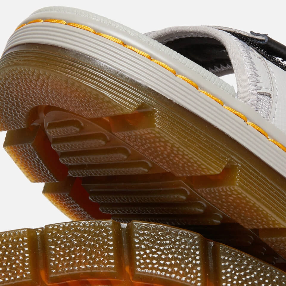 - Logo-woven pull tabs, yellow welt stitching, rubber linings and soles
