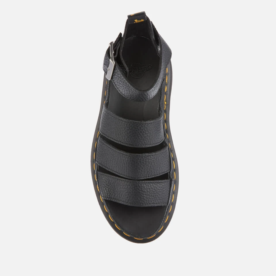 Black leather gladiator sandals with a chunky platform sole for added lift. The ‘Clarissa II’ sandals are crafted from soft and supple pebbled leather with a three-strap design and an adjustable ankle strap with a branded silver-tone buckle.
