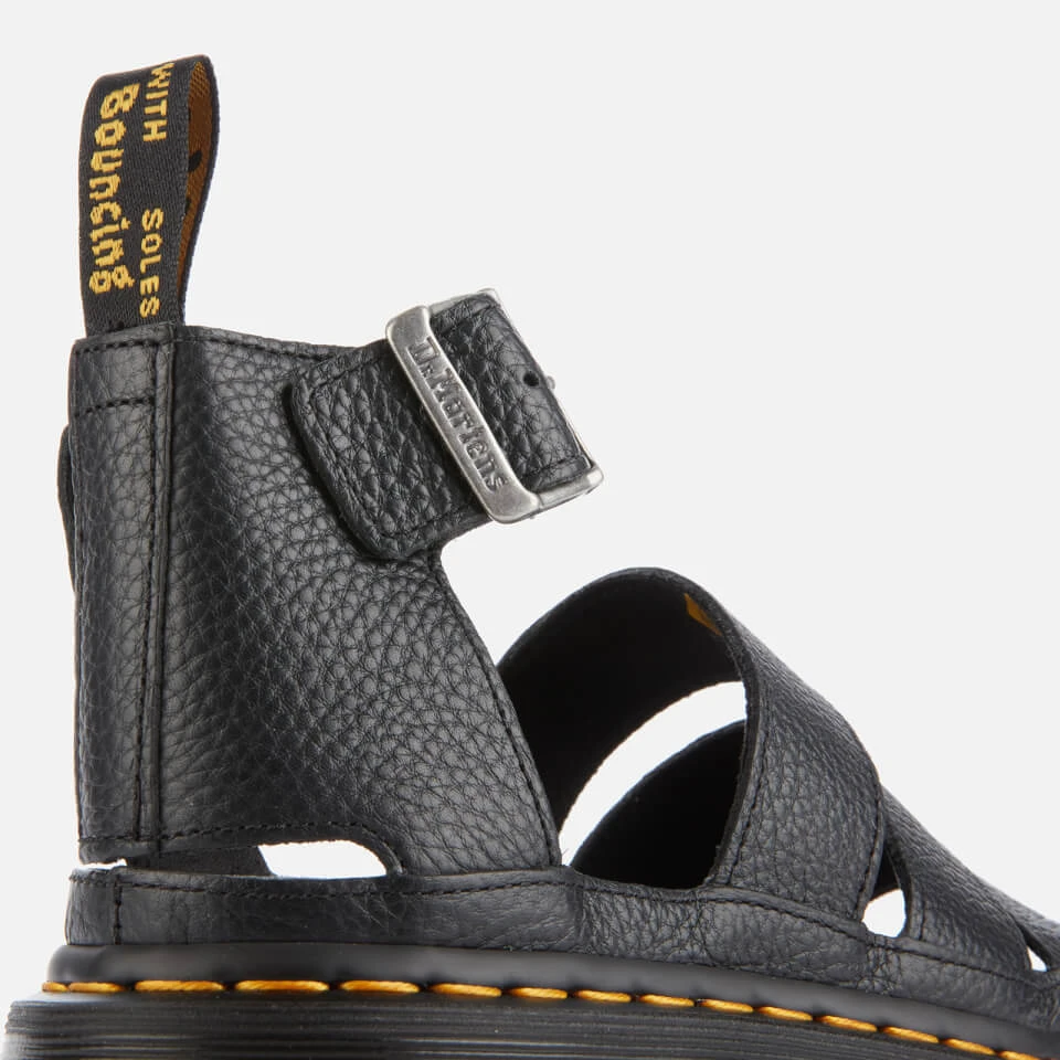The chunky sandals have signature Docs details, including visible yellow welt stitching, grooved edges and an AirWair heel pull loop. A durable Goodyear welt ensures the sandals are built to last. Branded silver-tone studs to one side and a textured outsole complete the platform sandals.