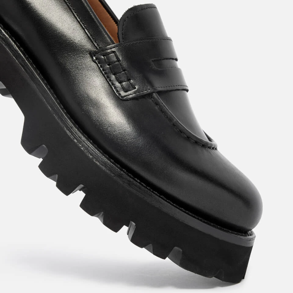 Grenson’s speciality is bringing fresh perspective to classic silhouettes. Take the Hattie loafers; cut from polished black leather, a clean-cut penny bar and moc-toe detailing uphold a traditional look. Conversely, their chunky cleated rubber soles are trimmed at a slight angle to achieve a modern, flared profile.