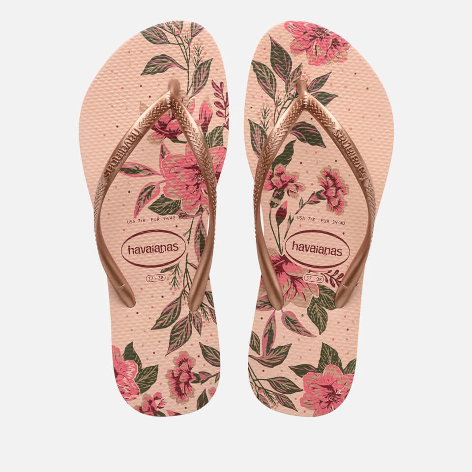 A high-summer essential, the Havaianas navy floral flip flops flaunt tonal metallic PVC straps and a durable rubber sole for optimum comfort and poolside grip. Pair yours with everything from jeans to dresses and swimwear throughout the warmer seasons.