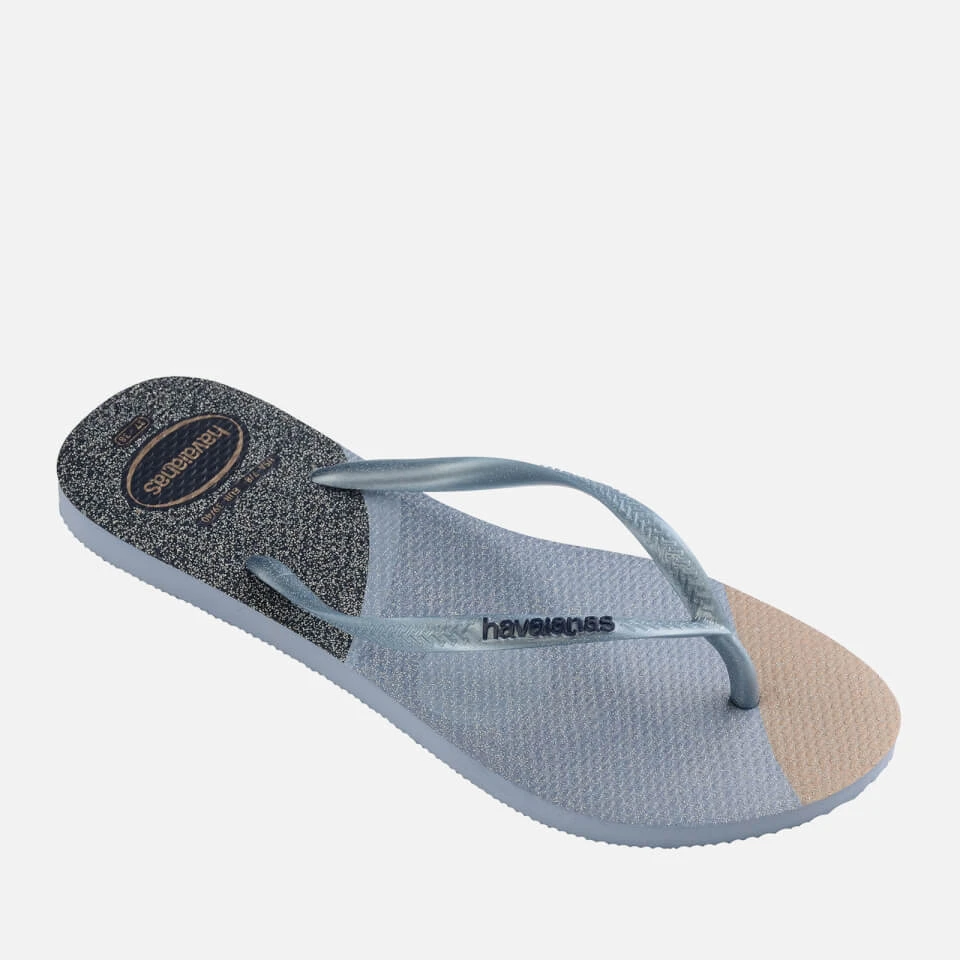 A high-summer essential, the Havaianas Palette Glow flip flops flaunt metallic blue straps and multicoloured rubber soles that offer optimum comfort and poolside grip. Pair yours with everything from jeans to dresses and swimwear throughout the warmer seasons.