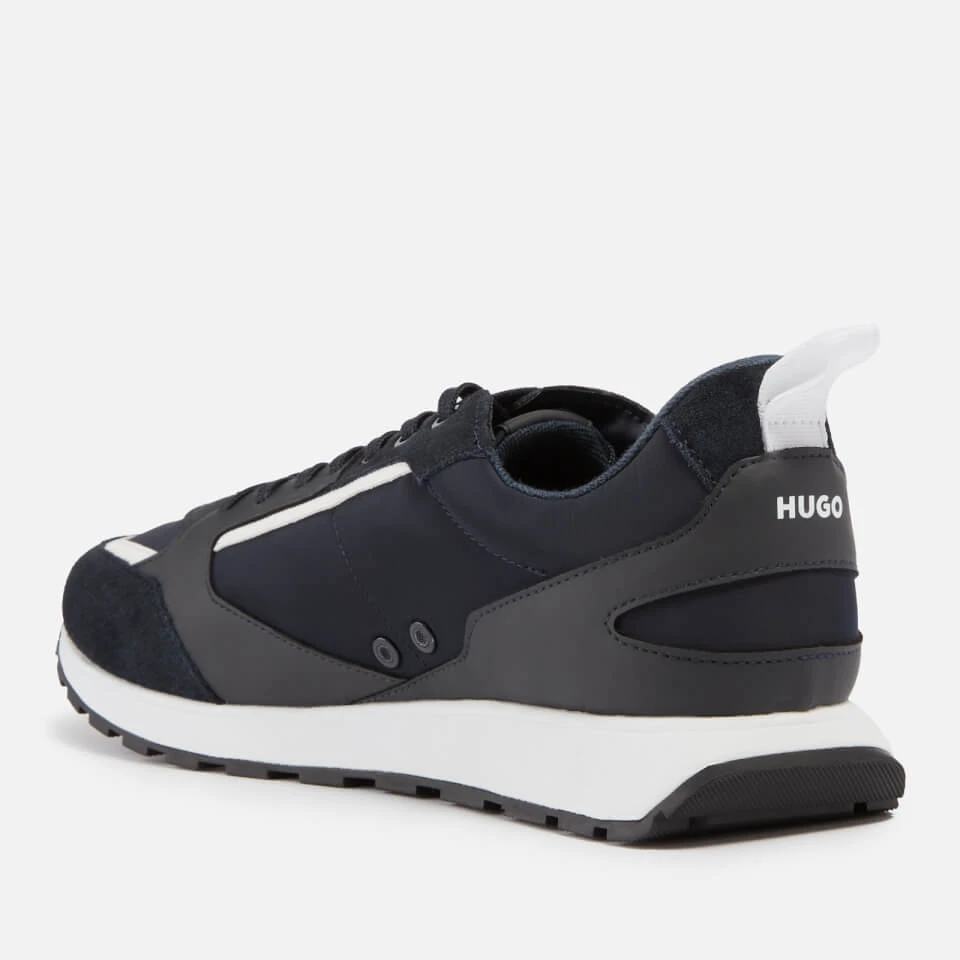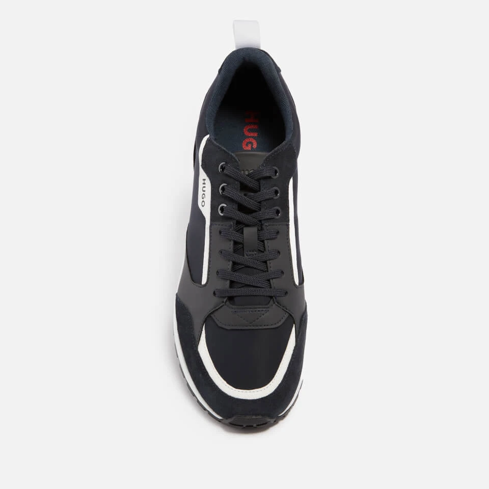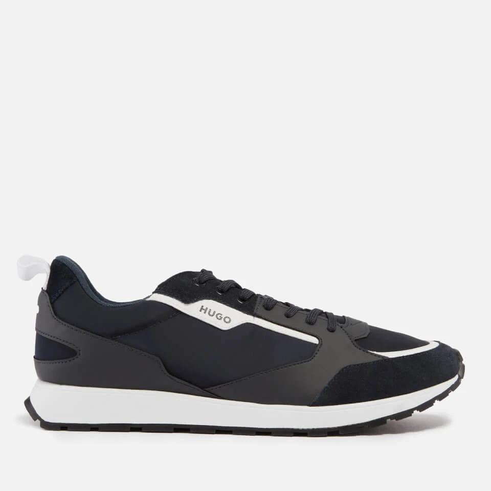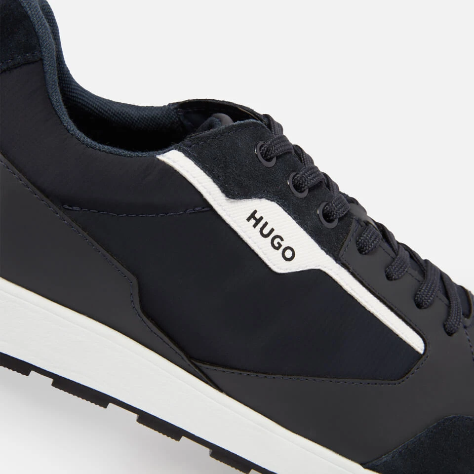 - Pull tabs, black and white cotton, leather and suede panels, metal eyelets, logo details