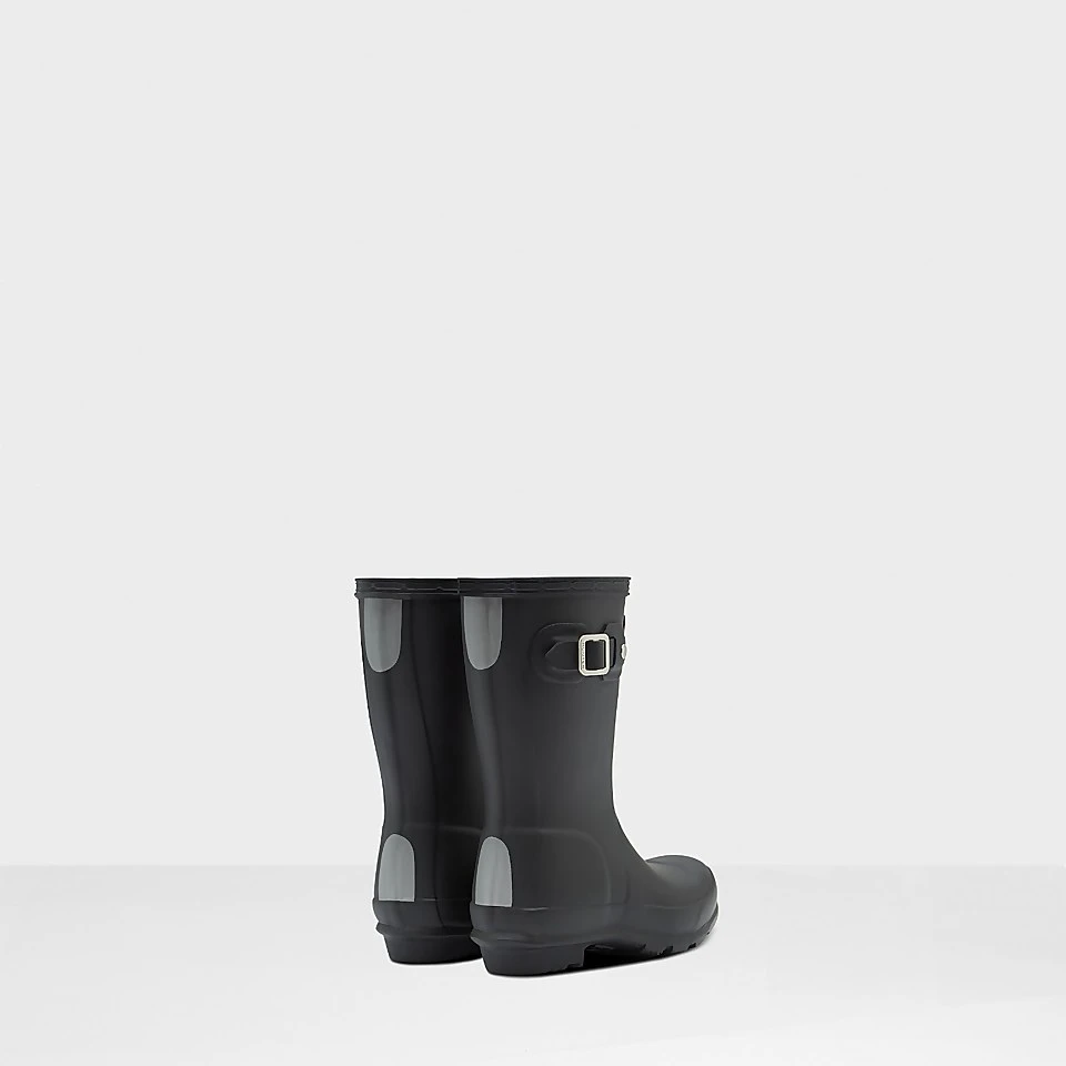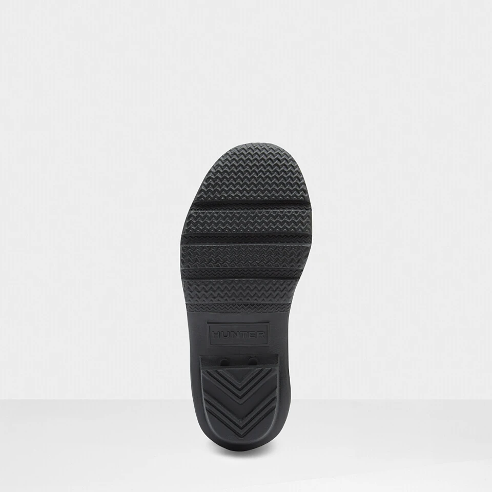 - Vegan, waterproof, matte finish, comfortable lining, Hunter Original tread pattern, logo badge