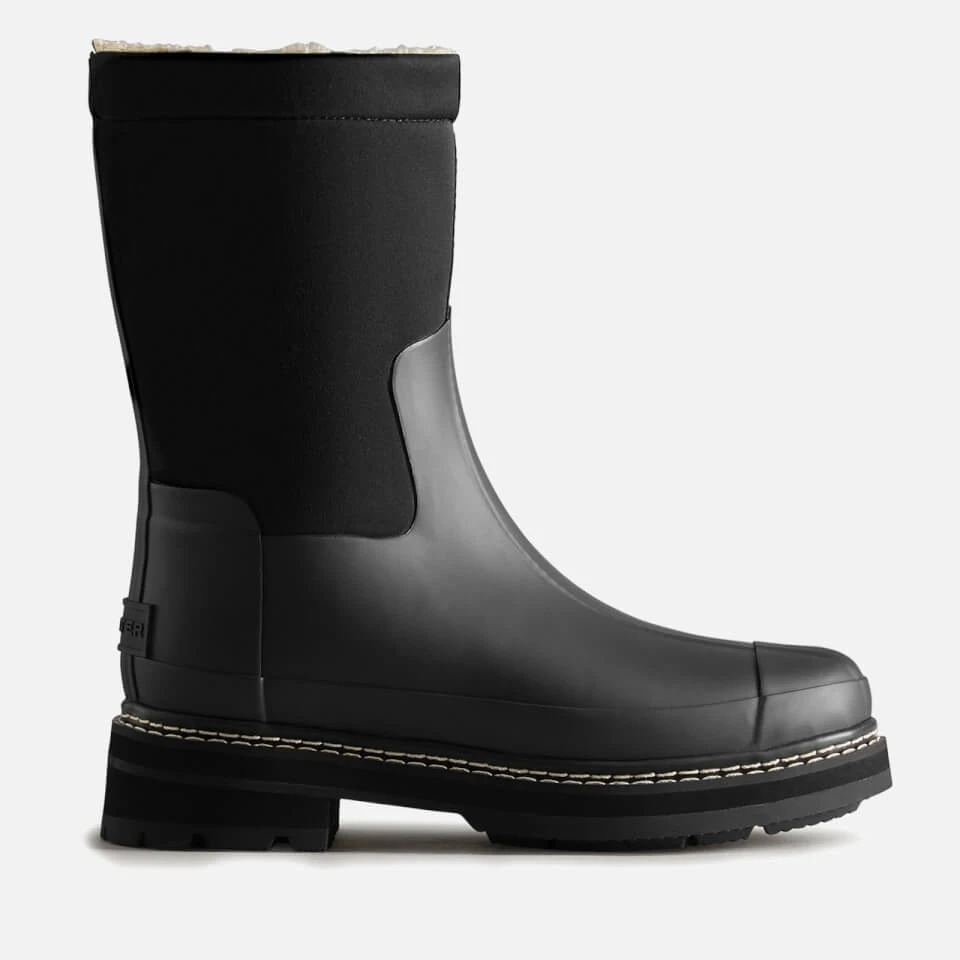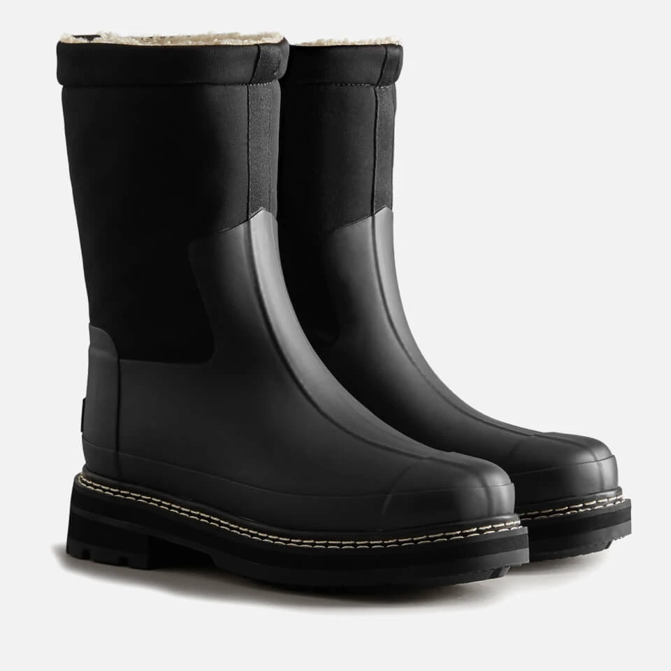 - Black waterproof rubber and neoprene, cream and faux shearling