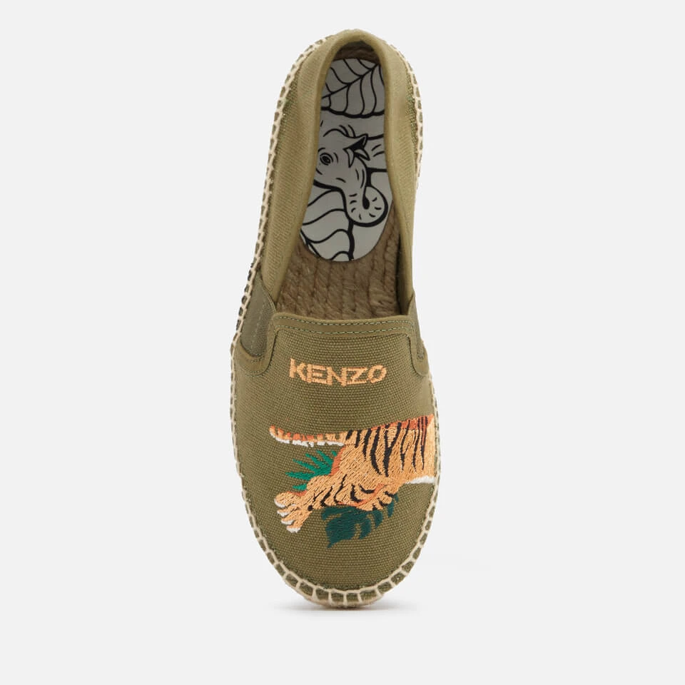 - Multicoloured embroidery, designer logo, elasticated inserts, jute midsoles, rubber soles