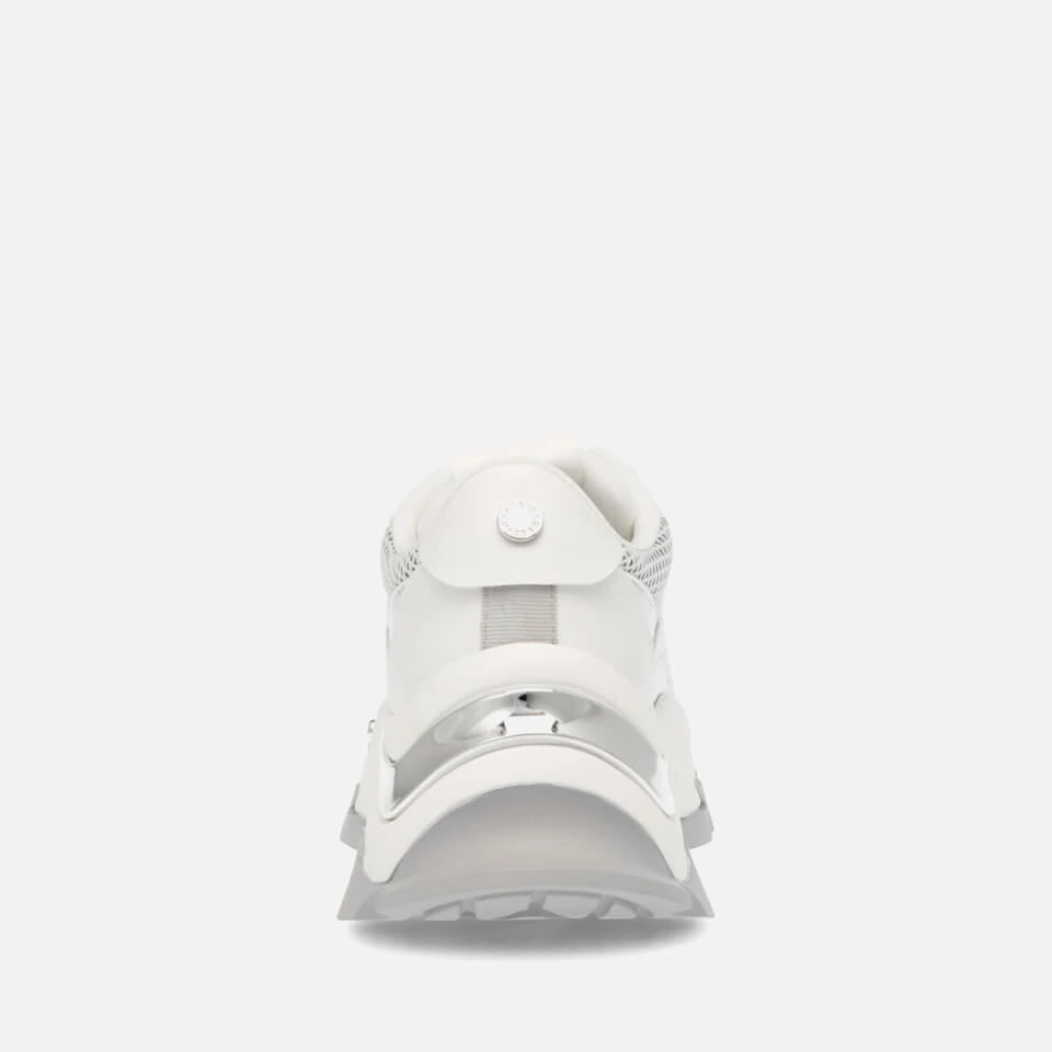 - White and silver mesh and faux leather-blend