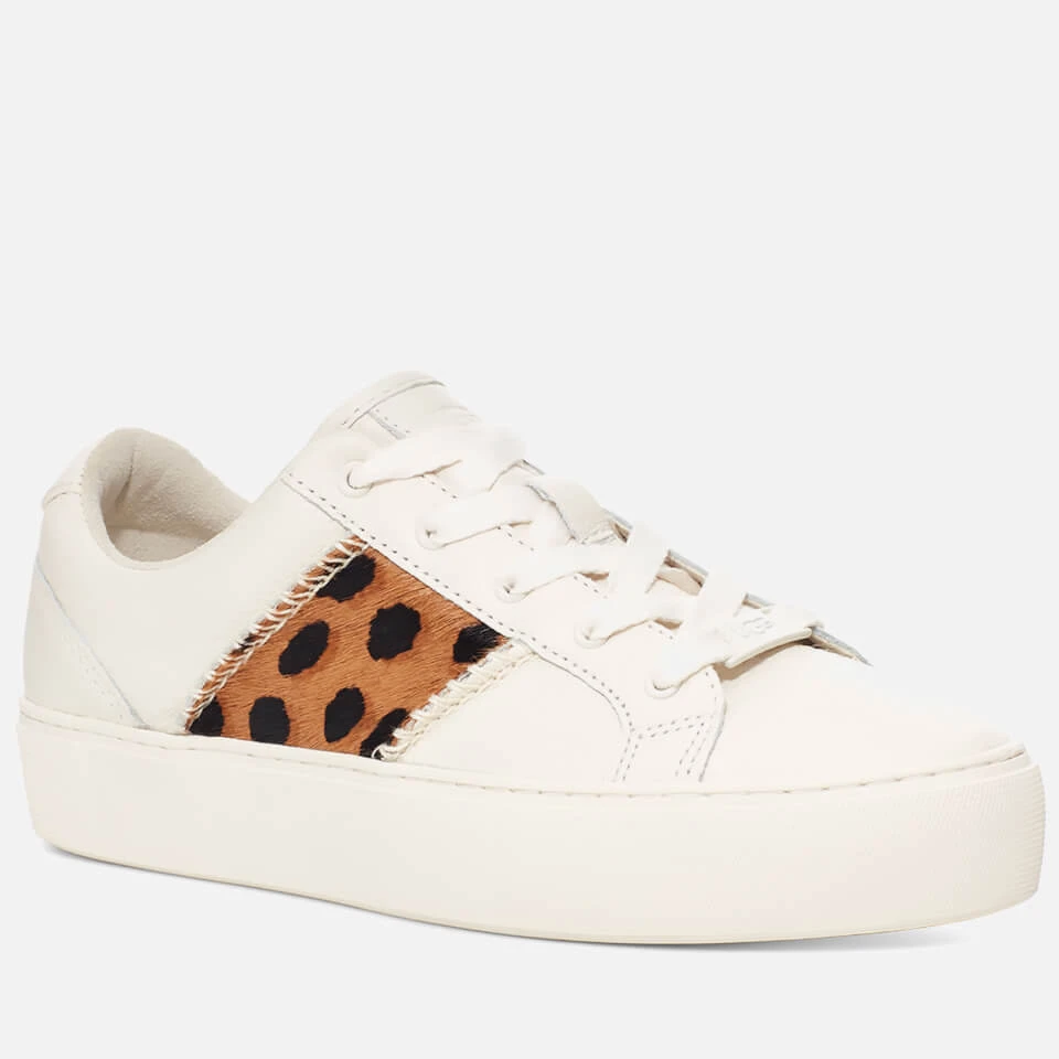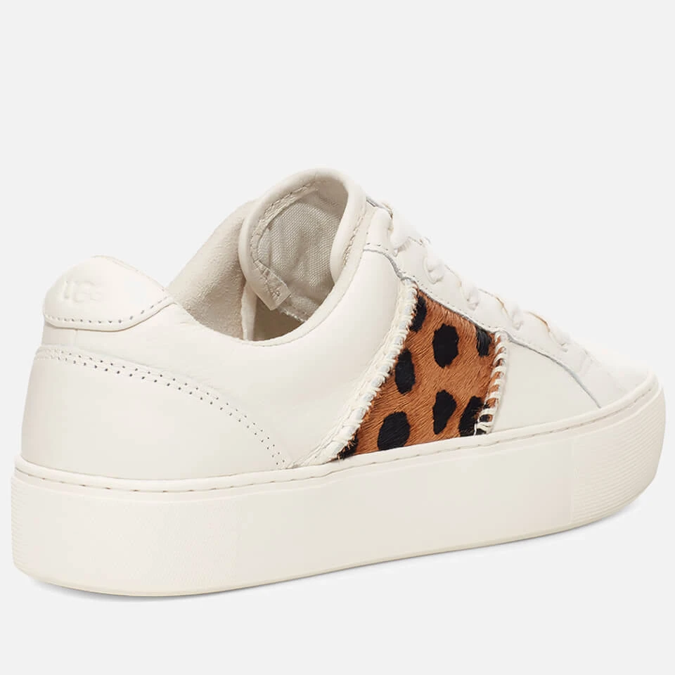 UGG’s Dinale trainers sport a clean design made from leather and grounded by a chunky rubber sole. They’re enlivened with faux pony skin inserts, detailed with a classic leopard print motif.