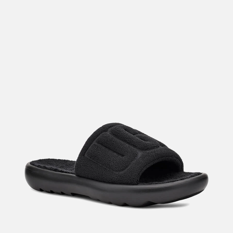 UGG’s black slides are designed with comfort in mind. Plush terry makes up the wide straps and footbeds, while the lightweight EVA soles provide extra grip when poolside.