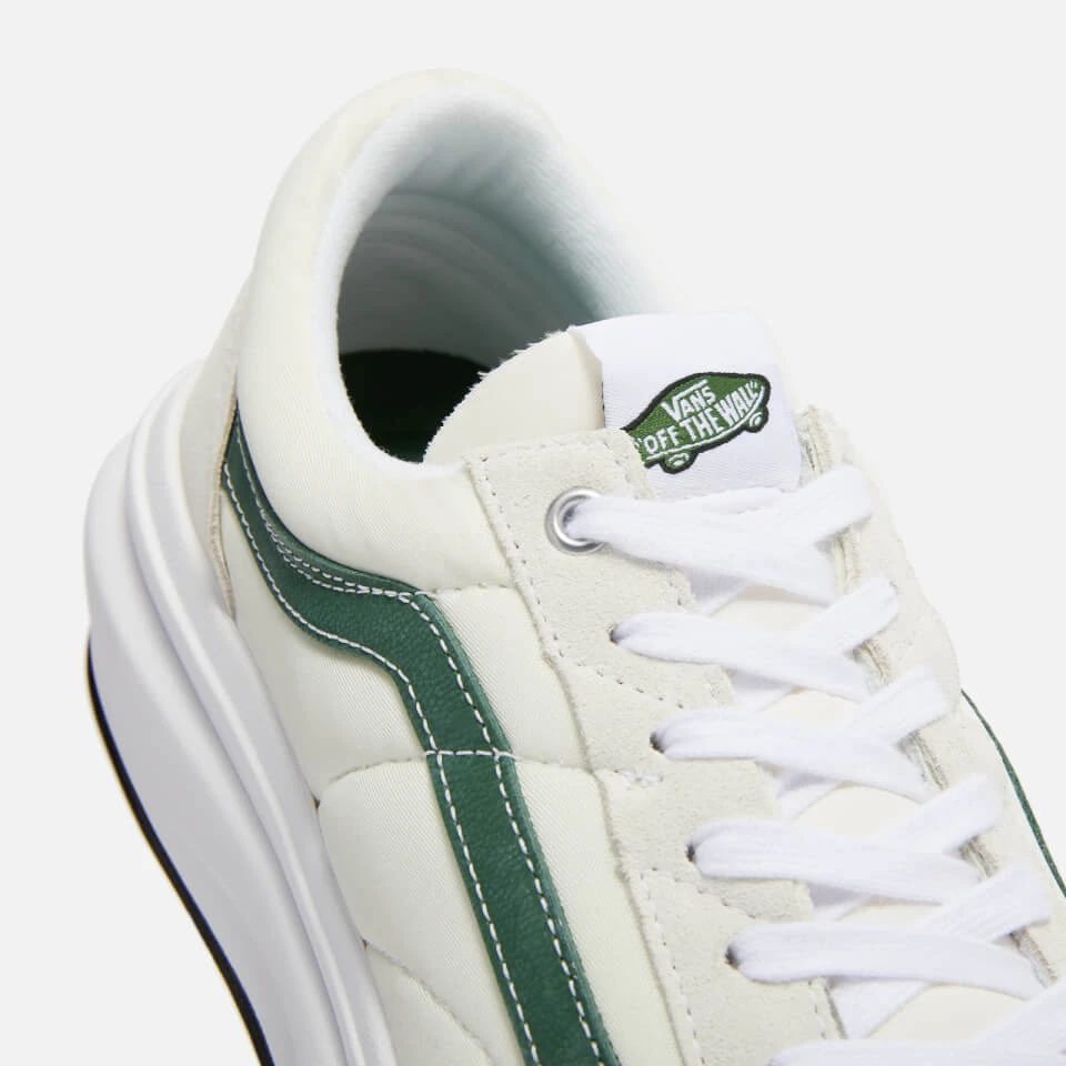 - Leather designer motif, metal eyelets, mesh linings, rubber soles