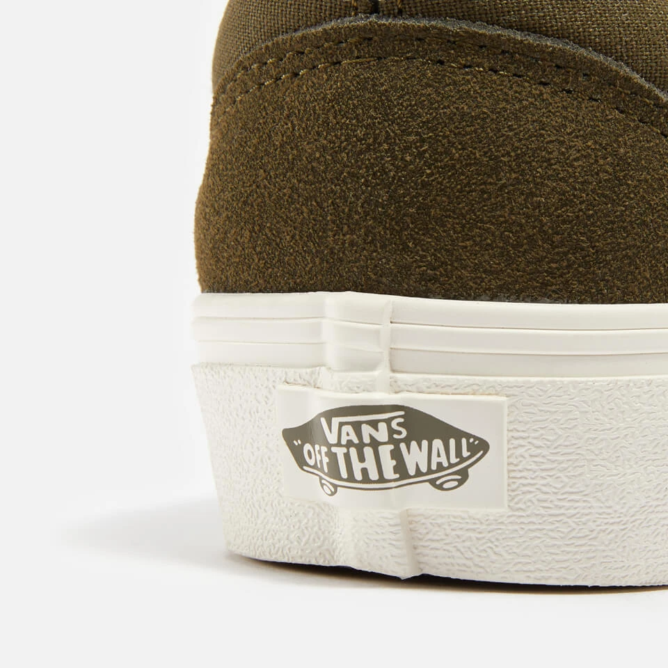 - Embroidered motifs, black leather trim, mesh linings, rubber soles