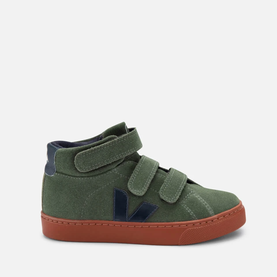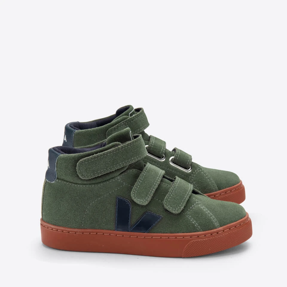- Upper: Suede. Panels: Suede and ChromeFree leather. V: Rubber, 23% rice waste. Outsole: 24% Amazonian rubber, 29% rice waste. Insole: Sugar cane, Amazonian rubber, recycled EVA, organic cotton. Lining: 100% recycled polyester. Straps: Suede.
