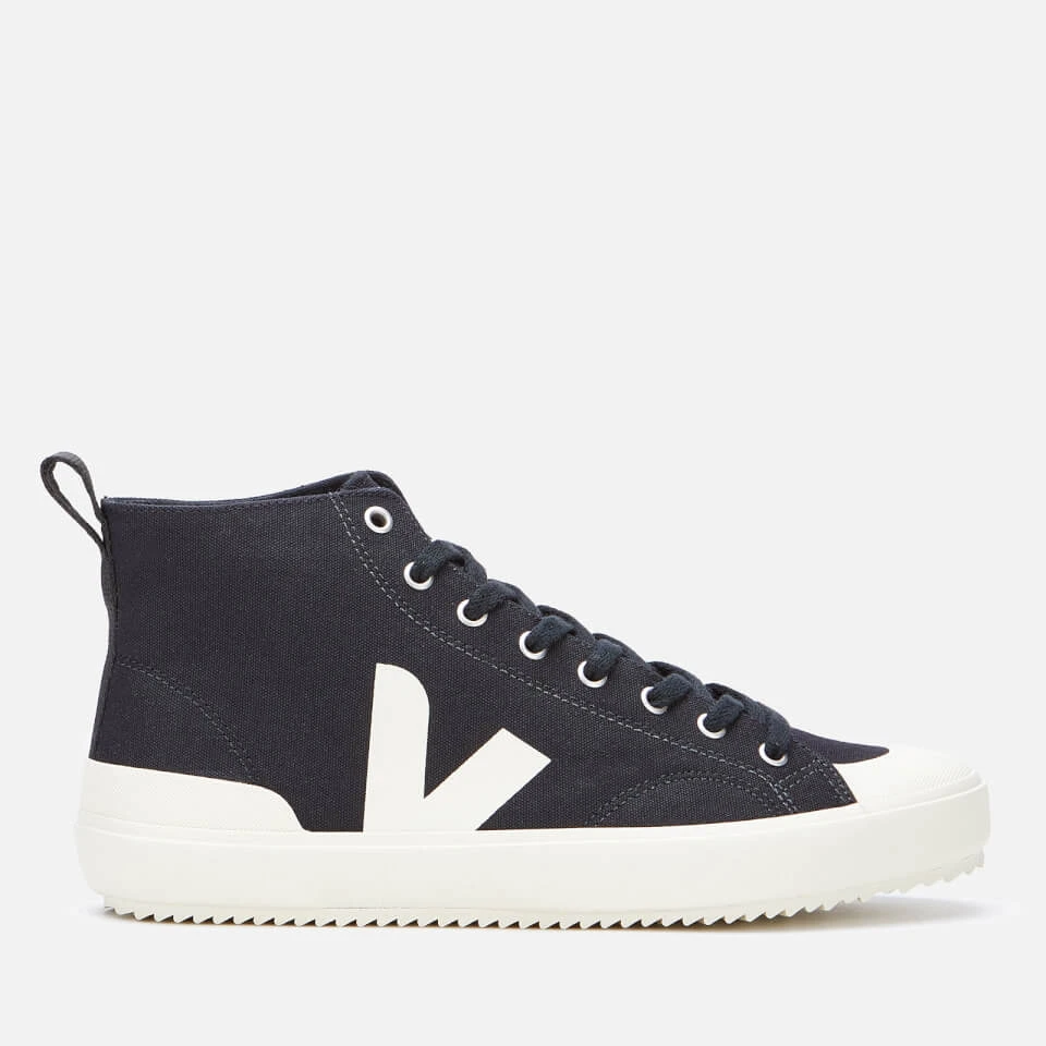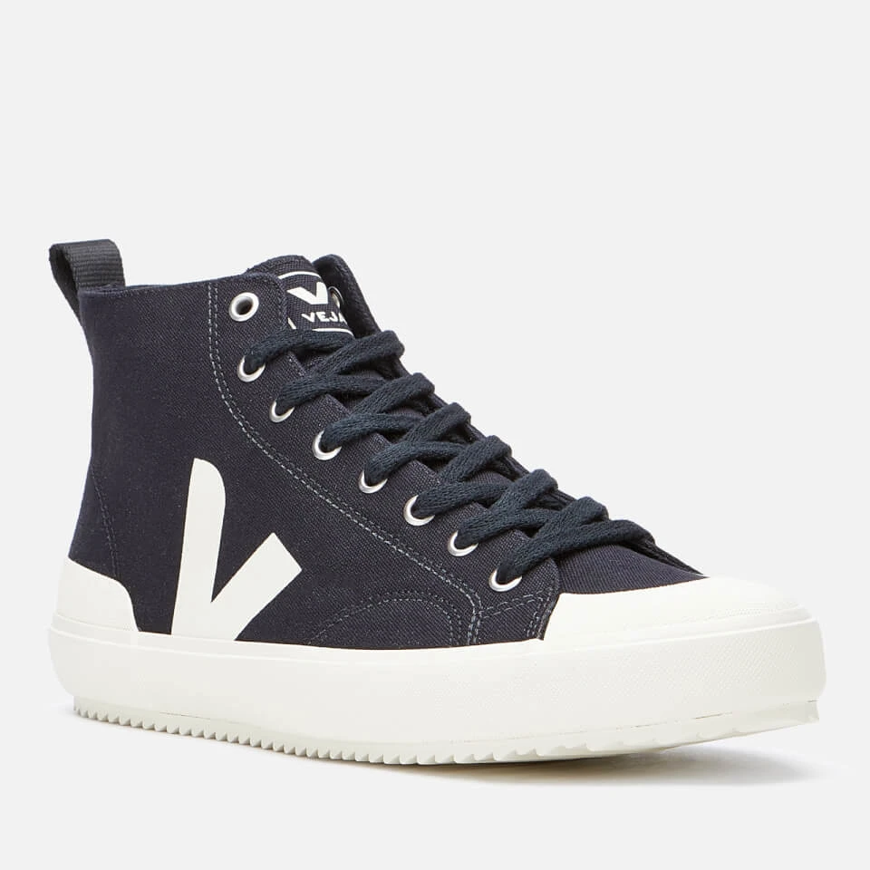 Brazilian-made ‘Nova’ trainers with Veja’s iconic ‘V’ detail in silkscreened print at sides. Designed in and lined with organic cotton canvas, the hi-top sneakers feature rubber toe caps, eight-eye lacing system and soles made of natural rubber from the Amazonian forest. Serrated treads offer great grip.