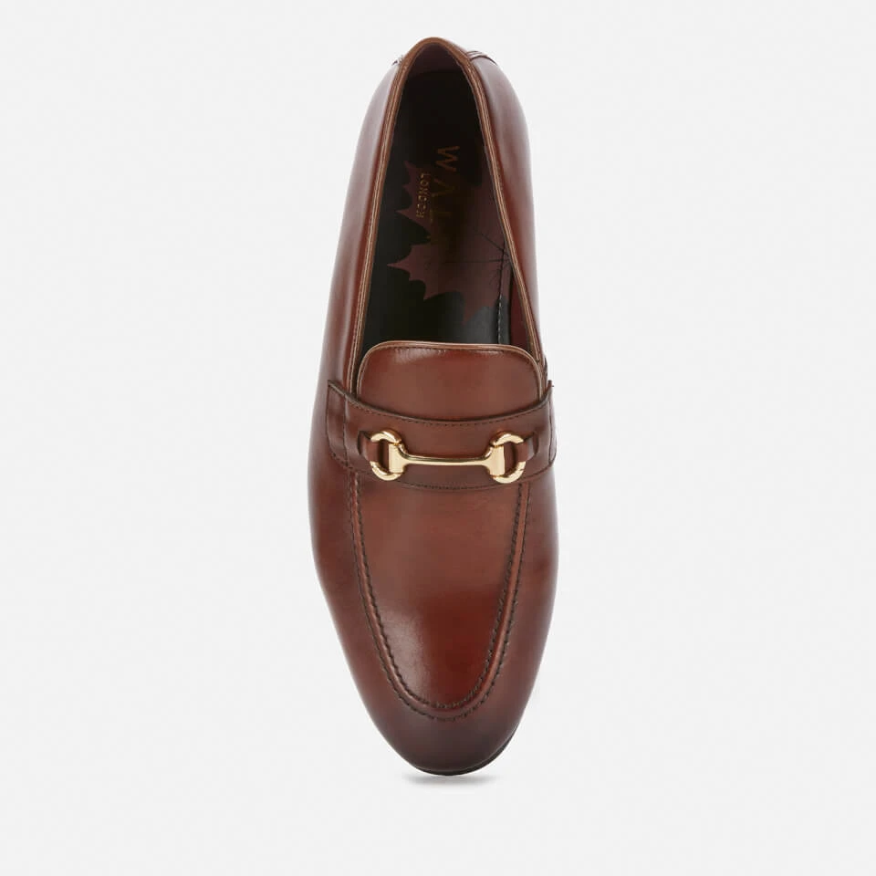 A versatile formal choice that can be worn in the office or on nights out, the Walk London Terry loafers are made from smooth brown leather and detailed with a gold-tone snaffle bit across the vamp for a classic look. The slip-on style has an apron toe and a tonal handmade sole with a small, stacked heel. A suede-effect heel counter on the inside provides comfort and a leaf print sockliner with gold foil branding adds the finishing touch.