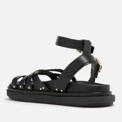 ALOHAS Women’s Hook-Loop Leather Double Strap Sandals – Black